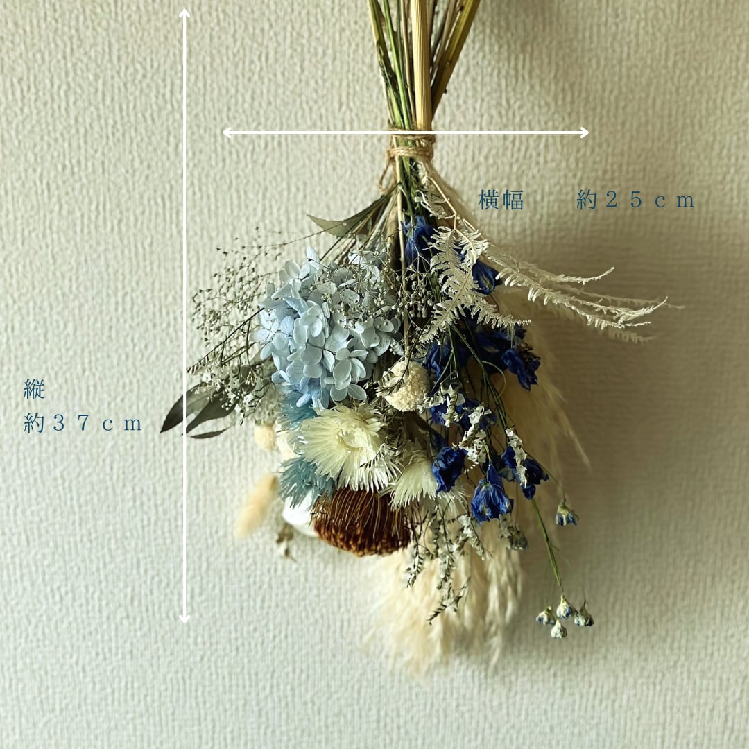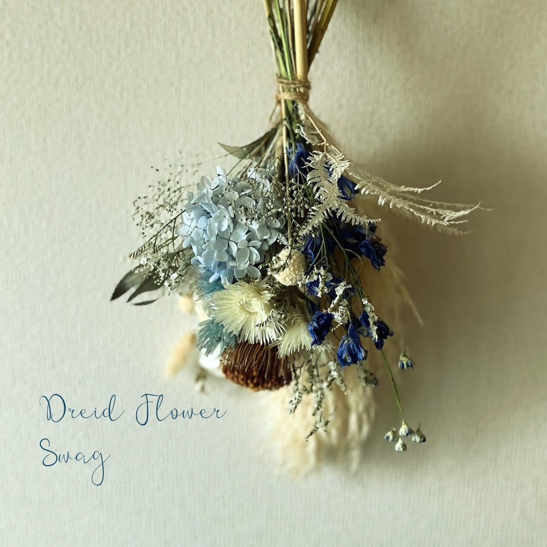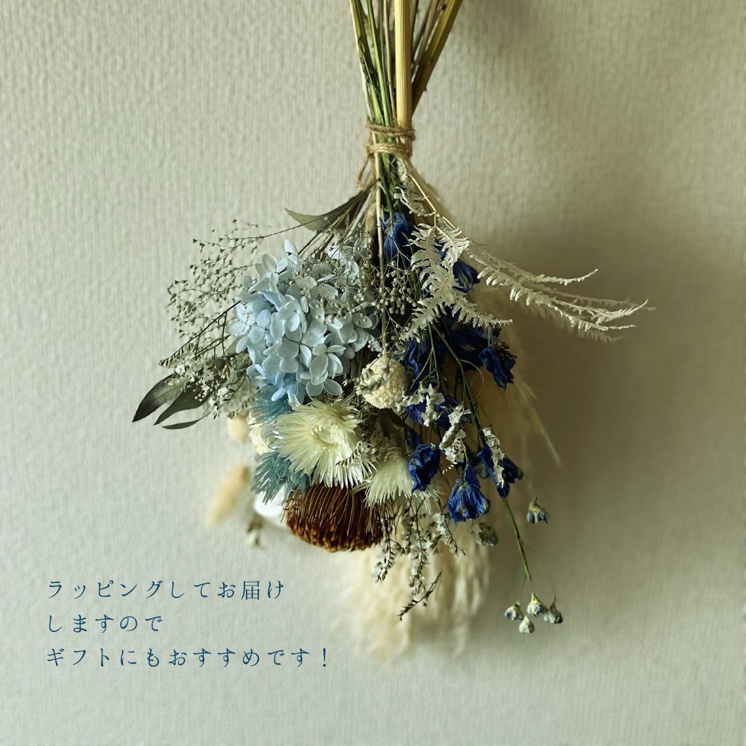 青と白のドライフラワースワッグ パンパスグラス デルフィニウム 誕生日 引越し祝い 送別 卒業祝い 結婚祝い 結婚記念日 インテリア