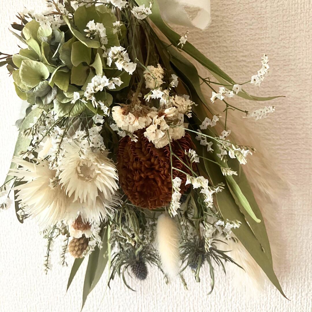 白グリーンスワッグ ナチュラル ドライフラワー スワッグ バンクシア パンパスグラス ユーカリ 誕生日 記念日 お祝い インテリア 花束