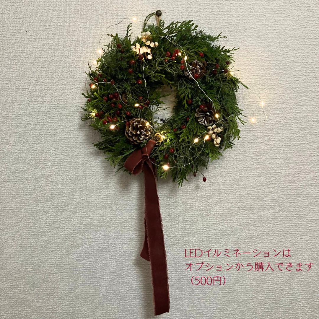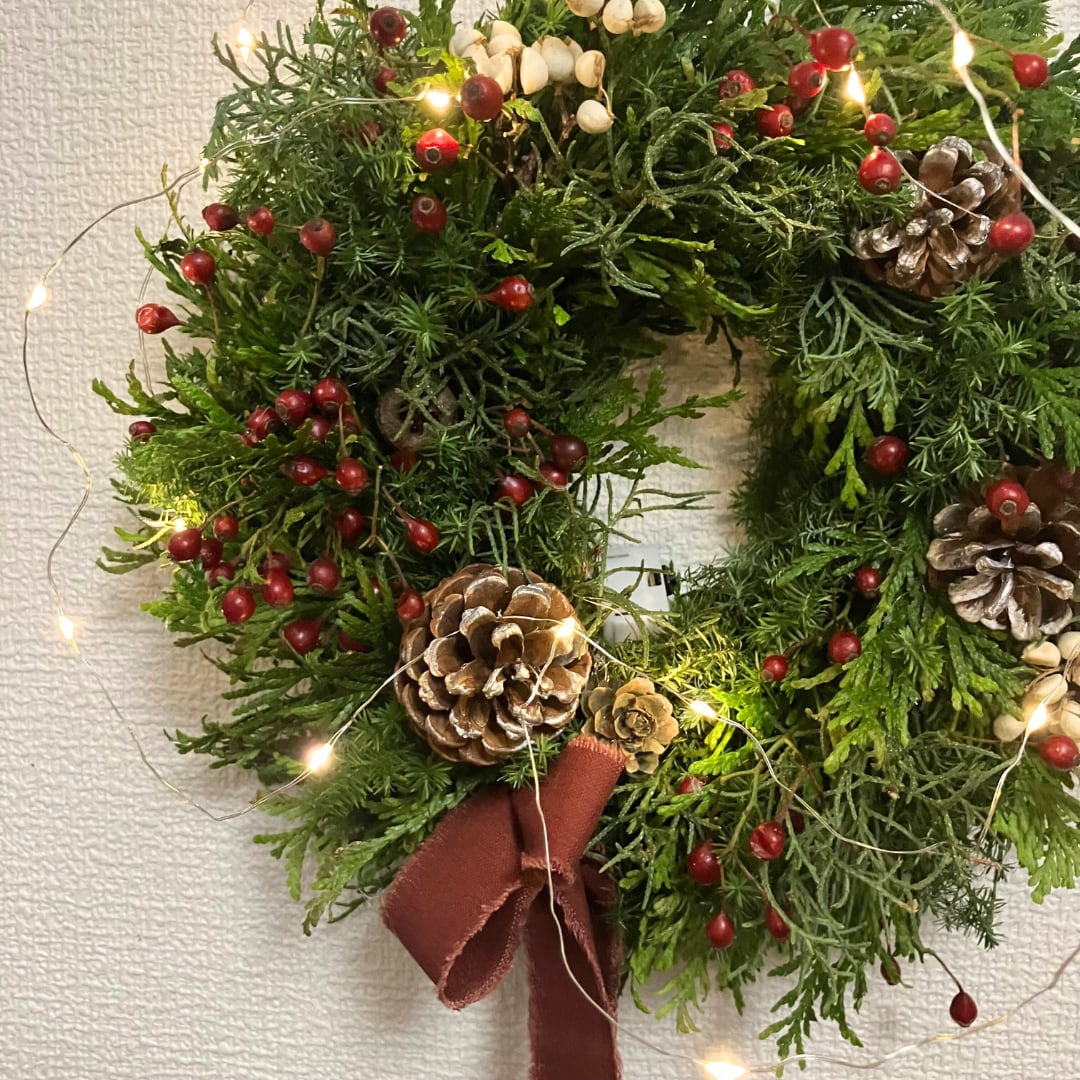 クリスマスの季節を楽しみながら自然と一体感を感じられるクリスマスリースをお届けします。