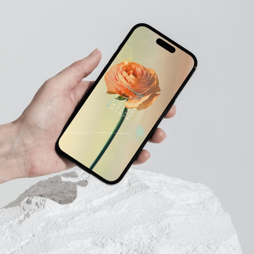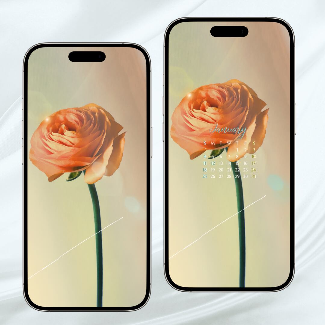幾重にも重なる花びらが美しいラナンキュラスの2026年1月カレンダー壁紙です。