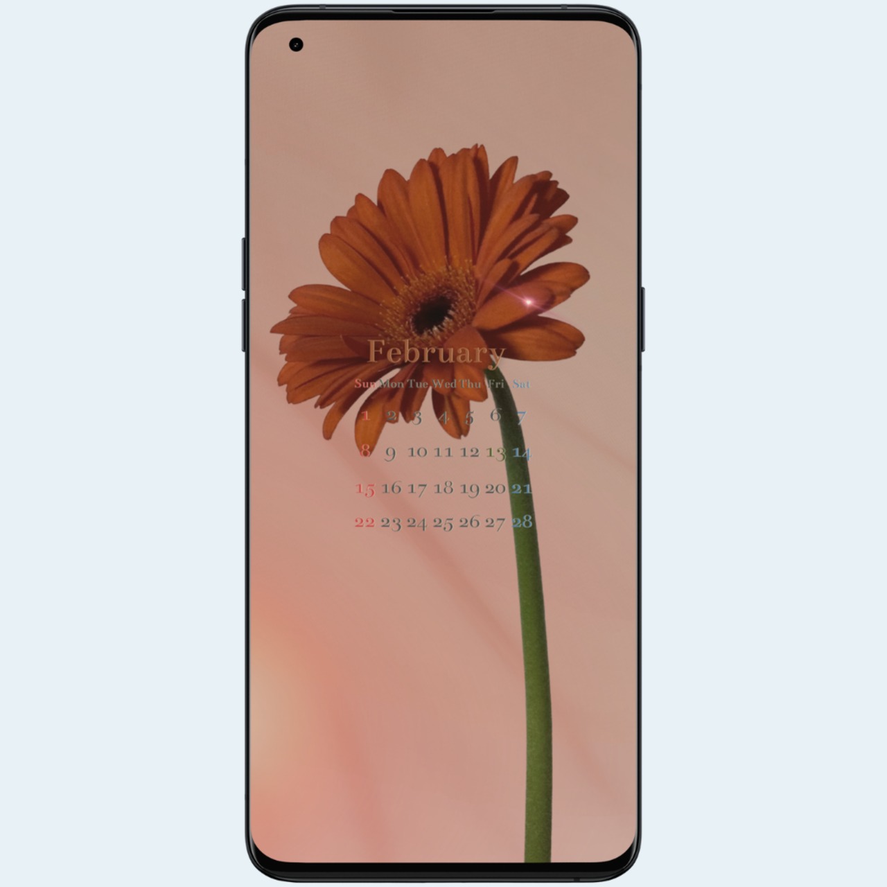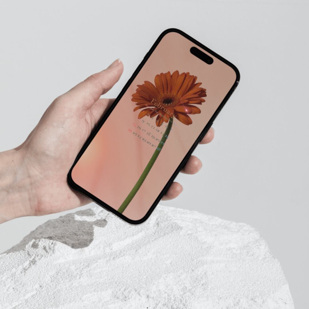 スマホ壁紙 待受け 2026年カレンダー 2月 ガーベラ フラワー ボタニカル