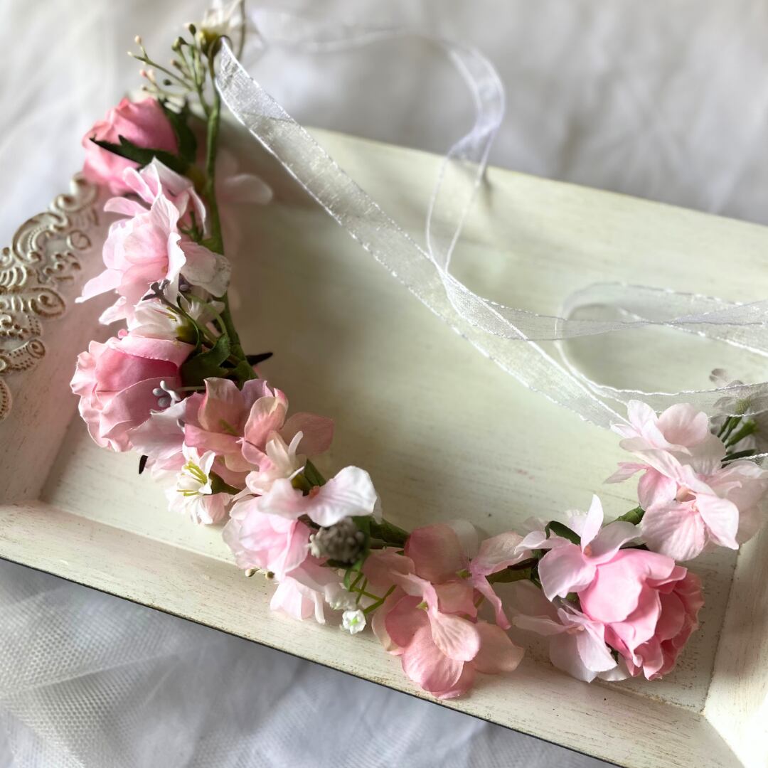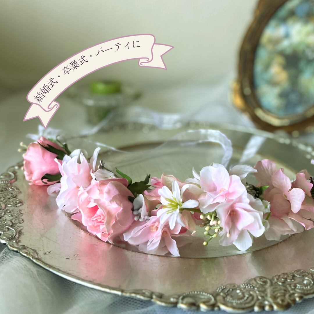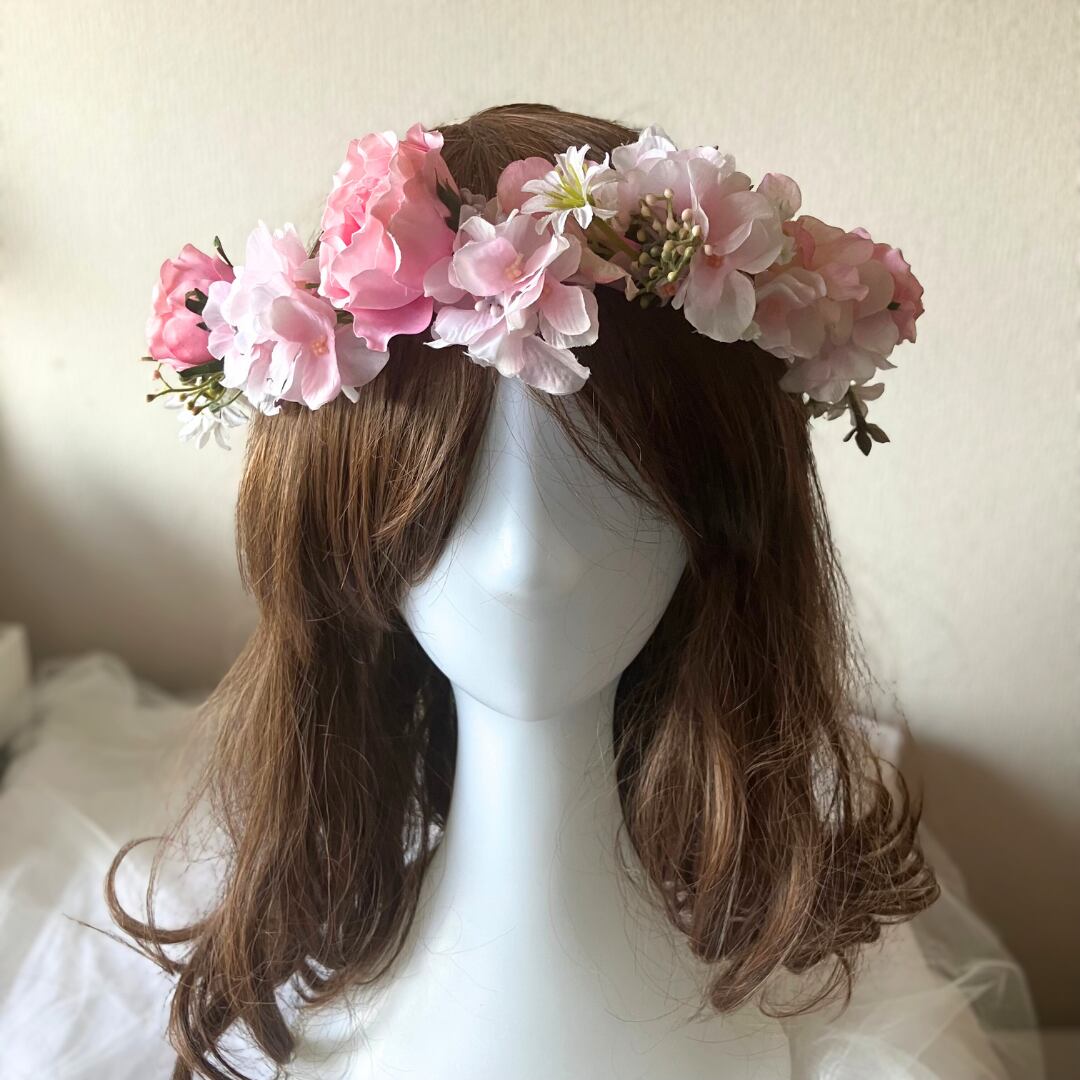 花冠 ヘアアクセサリー ピンク アーティフィシャルフラワー 結婚式 卒業式 パーティ