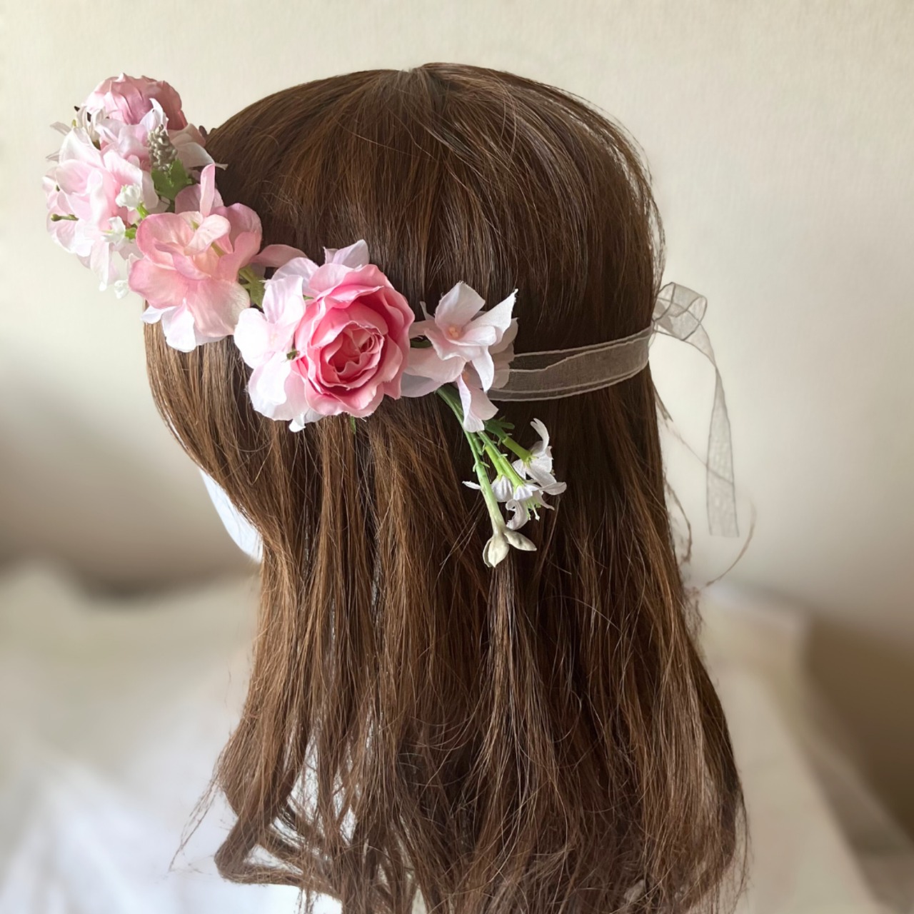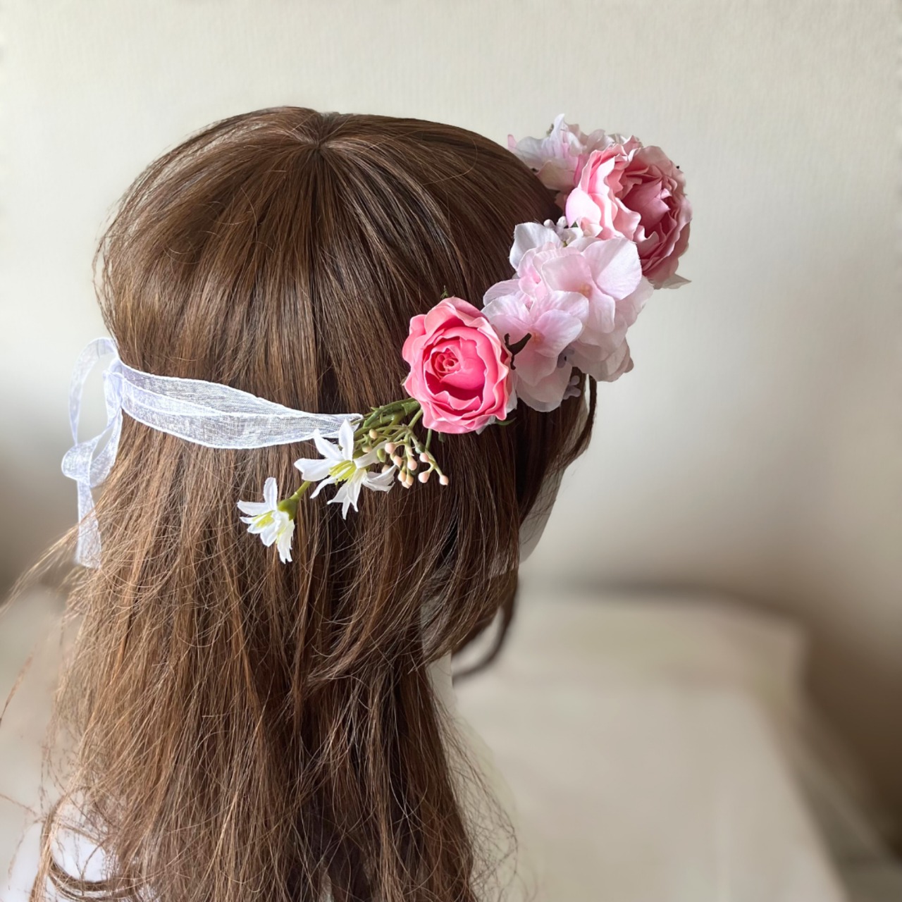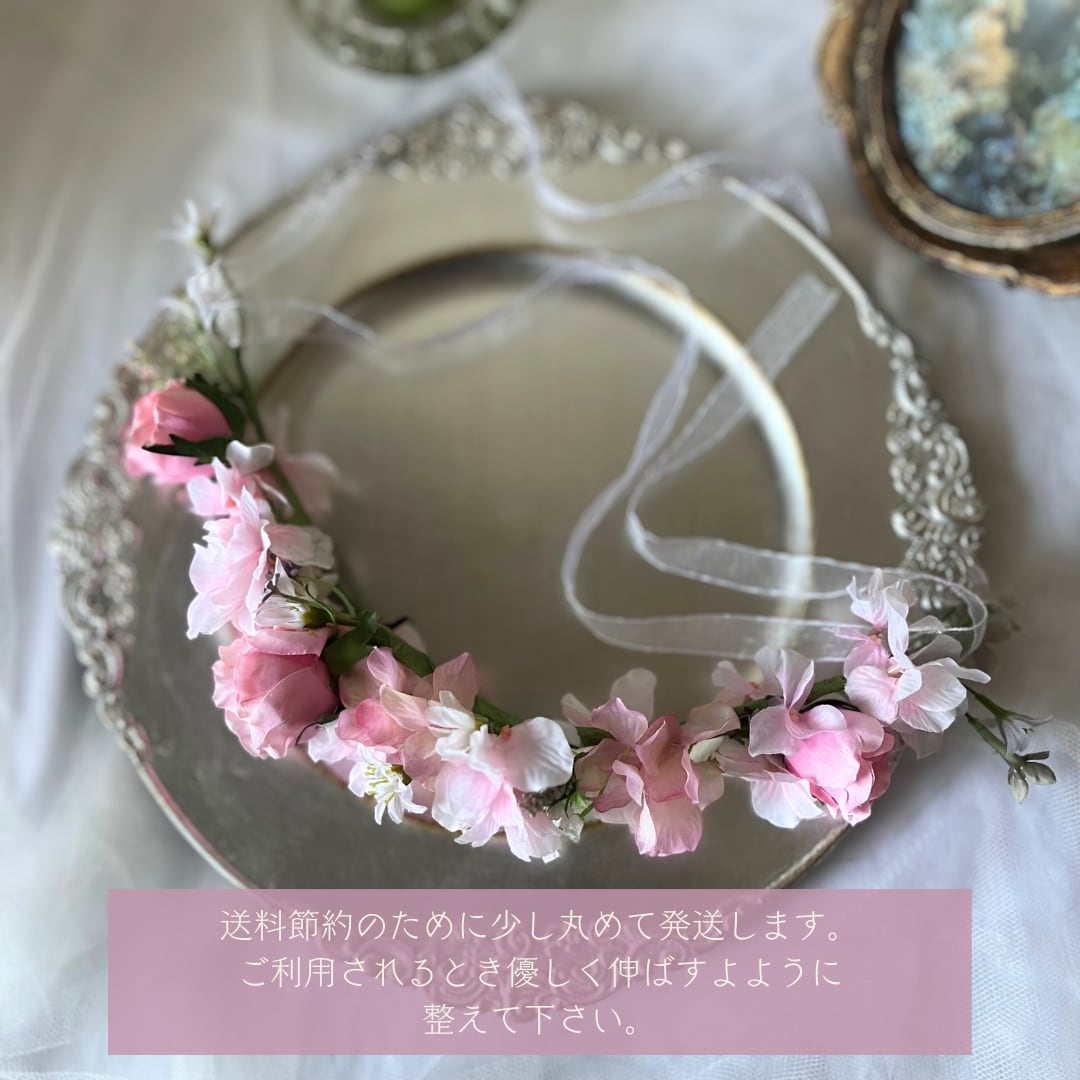 ぜひ、可愛らしさ溢れる花冠で素敵なヘアスタイルを楽しんでください。