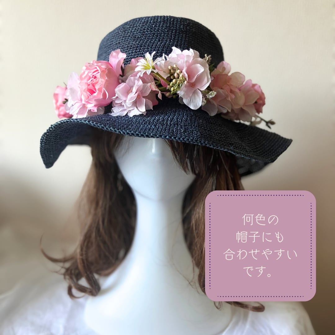 ピンクのバラ、アジサイに、マーガレットなどの高品質なアーティフィシャルフラワーを使用しています。